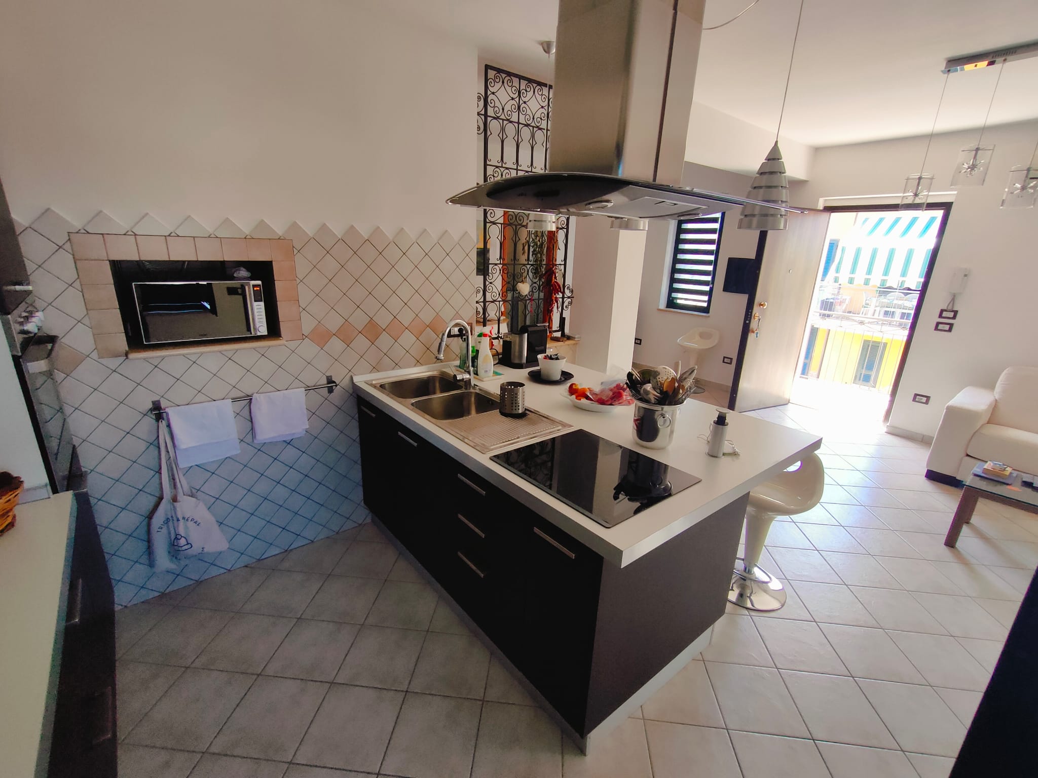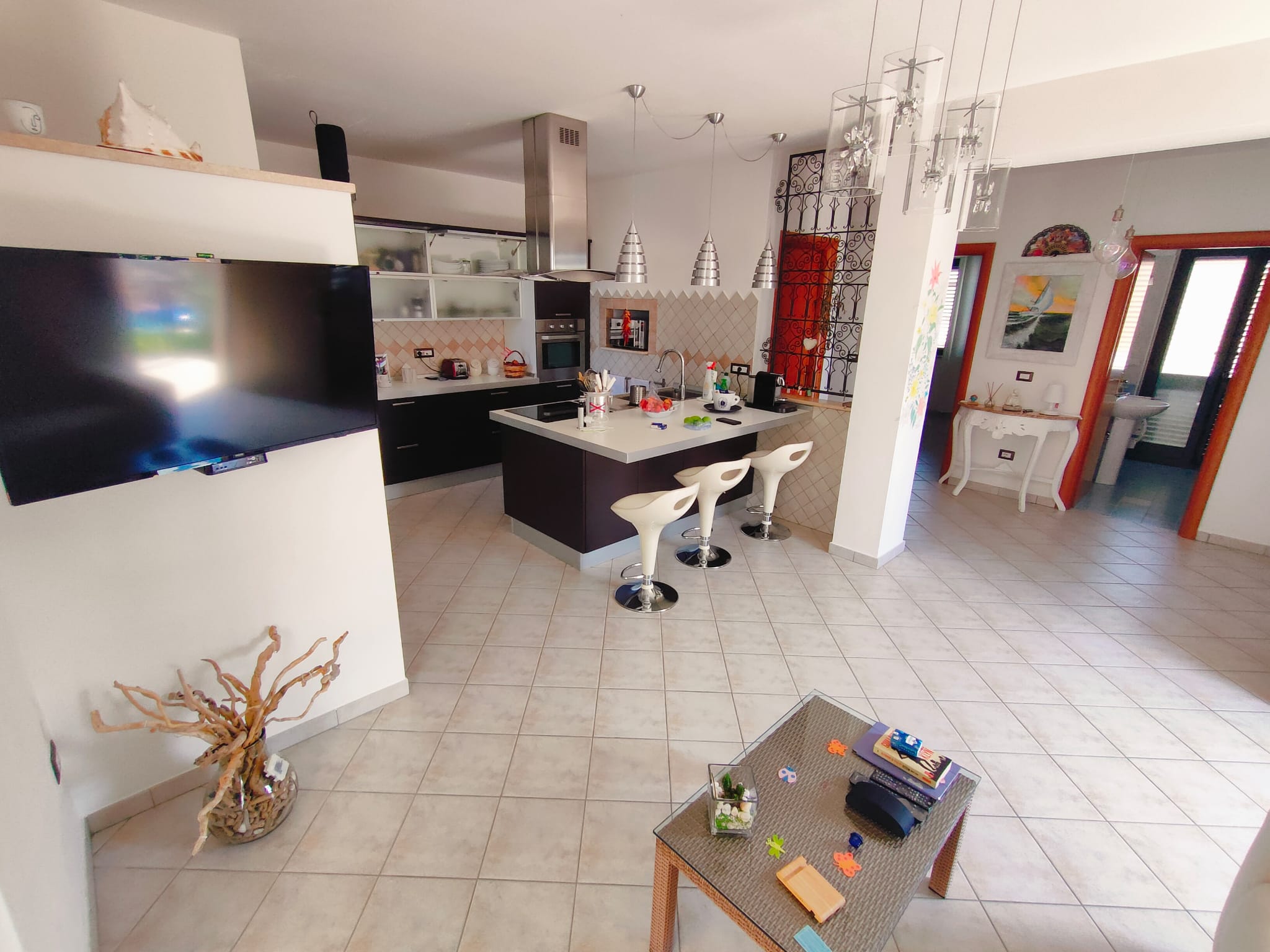 Ampio soggiorno con cucina a vista, moderna e funzionale, con penisola e piano cottura a induzione